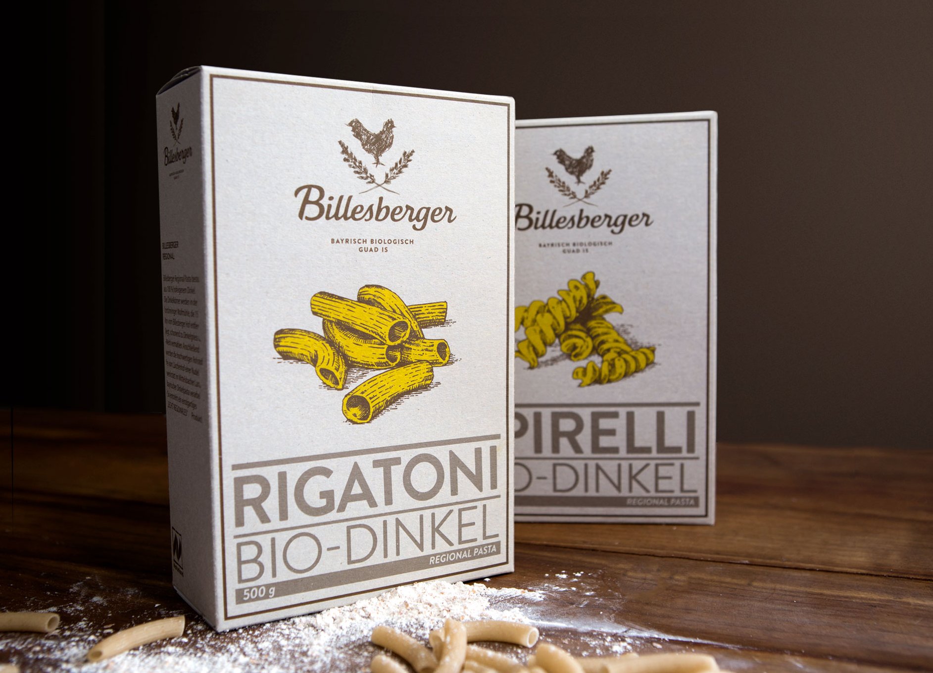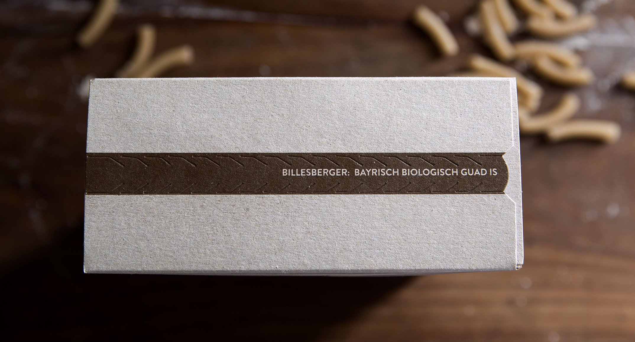 Ein Bio-Bauernhof mit ausschließlich hochwertigen Naturprodukten. Für die hauseigene Pasta Kollektion galt es eine Verpackung zu entwerfen, die zu 100% recyclebar ist. "Bayrisch biologisch guad is"